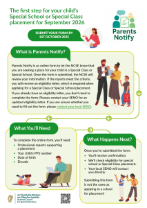 All local SENOs will be engaging with parents and schools to highlight this process also and to provide support to those parents/guardians seeking placement for September 2026.