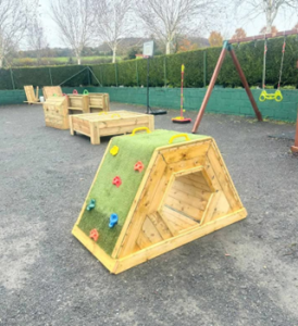 “With the outdoor grant our main playground area was furnished with a new Wendy Playhouse with slide. In our small outdoor play /sensory area we received mirrors and a wall gem. The greatest benefit to the service is that all of the children are given more opportunities to avail of physical exploratory play in both areas for all children including children with additional needs to self-regulate. Engaging in LCCC’s Outdoor Play Initiative 2025 was indeed very positive. Faye worked collaboratively with the staff and was a great support”.