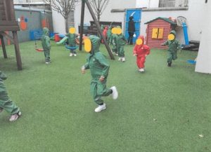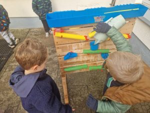 A local preschool and afterschool service were eager to extend their provision of outdoor play by not only adding to their wet gear collection by ordering some sets for the staff in the service, but also by providing the children with some new pieces of equipment that would stimulate them and encourage further interest in being outdoors.