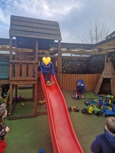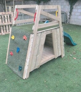 “With the outdoor grant our main playground area was furnished with a new Wendy Playhouse with slide. In our small outdoor play /sensory area we received mirrors and a wall gem. The greatest benefit to the service is that all of the children are given more opportunities to avail of physical exploratory play in both areas for all children including children with additional needs to self-regulate. Engaging in LCCC’s Outdoor Play Initiative 2025 was indeed very positive. Faye worked collaboratively with the staff and was a great support”.