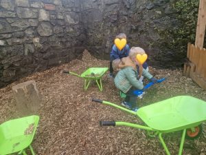 “Having the secure boundary in place provides security for the School Aged Children to learn, grow and explore in this large area which previously couldn’t be used due to safety concerns. Outdoor play is essential in School Aged Care and the children’s holistic needs are being met with the introduction of outdoor play. The children love to be outside especially after spending their morning in School. The Outdoor Play Initiative was of great benefit to our service as we are a new service, providing essential childcare to a rural community in Laois and had limited funds to create a fun and engaging outdoor space. We have received a large sandpit, climbing frame and mud kitchen and have also matched the budget to include other outdoor equipment, such as a wooden car, steering wheels and climbing frame, we intend to re- gravel the area in the new year. The equipment is enjoyed daily. This stimulating environment gives children the opportunity to engage in risk taking, explore the natural environment and stimulate all 5 senses through the outdoors. All staff in the Laois County Childcare Committee are extremely helpful and responsive, and always happy to give support and guidance in relation to the Outdoor play initiative and all other matters. It is evident that Muriel, Faye and Sinead care deeply about the provision of high standard services in our County”.