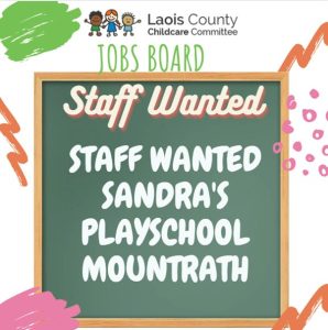 | Sonas Mountmellick Community Childcare are looking to recruit Childcare Practitioners – Minimum Level 6 | The hours required are Monday to Friday