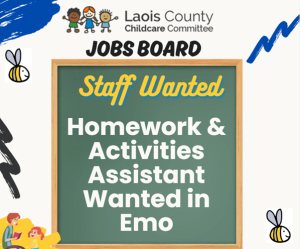 | We are looking for the right candidates to come join our team in September. Part time person required for our service in Emo and Portarlington. Might suit someone with children in school) | Must have a Fetac level 5 or 6 Certificate in childcare. Experience an advantage but not necessary. Please do not apply if you have no qualifications in childcare. |