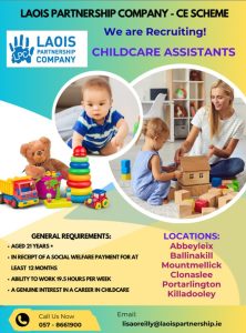 Laois Partnership Company – CE Scheme are recruiting for Childcare Assistants |